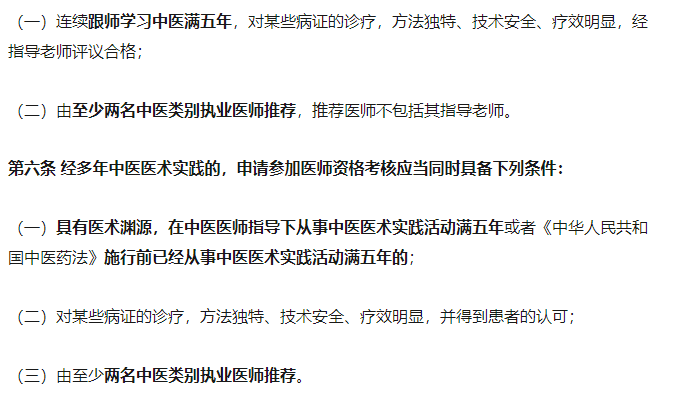 1、连续跟师学习中医或者从事中医医术实践满5年