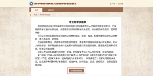 3.点击“前往报名”按钮后,进入考生报考承诺书页面,如下图所示: