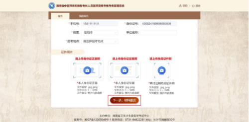 录入并上传基础资料后,点击该页面底部的“下一步,材料提交” 按钮后,进入材料提交页面。如下图所示: