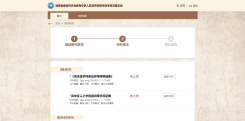 《传统医学师承出师考核申请表》:文件类型:.jpg,.png;文件大小:1-5MB;文件数量:最多 10 张;文件要求:图片内容清晰。