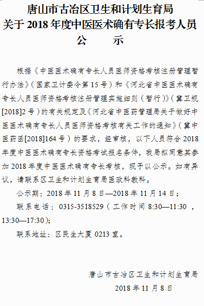 附件:河北省唐山市古冶区2018年中医医术确有专长考核人员报名公示名单