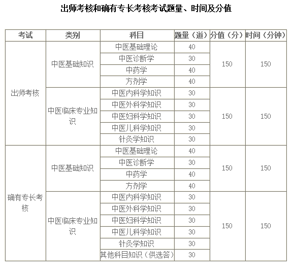 关于“出师考核和确有专长考核考试题量、时间及分值”相关信息,相信大家都想了解,为方便大家备考,在此医学教育网小编为大家整理如下内容: