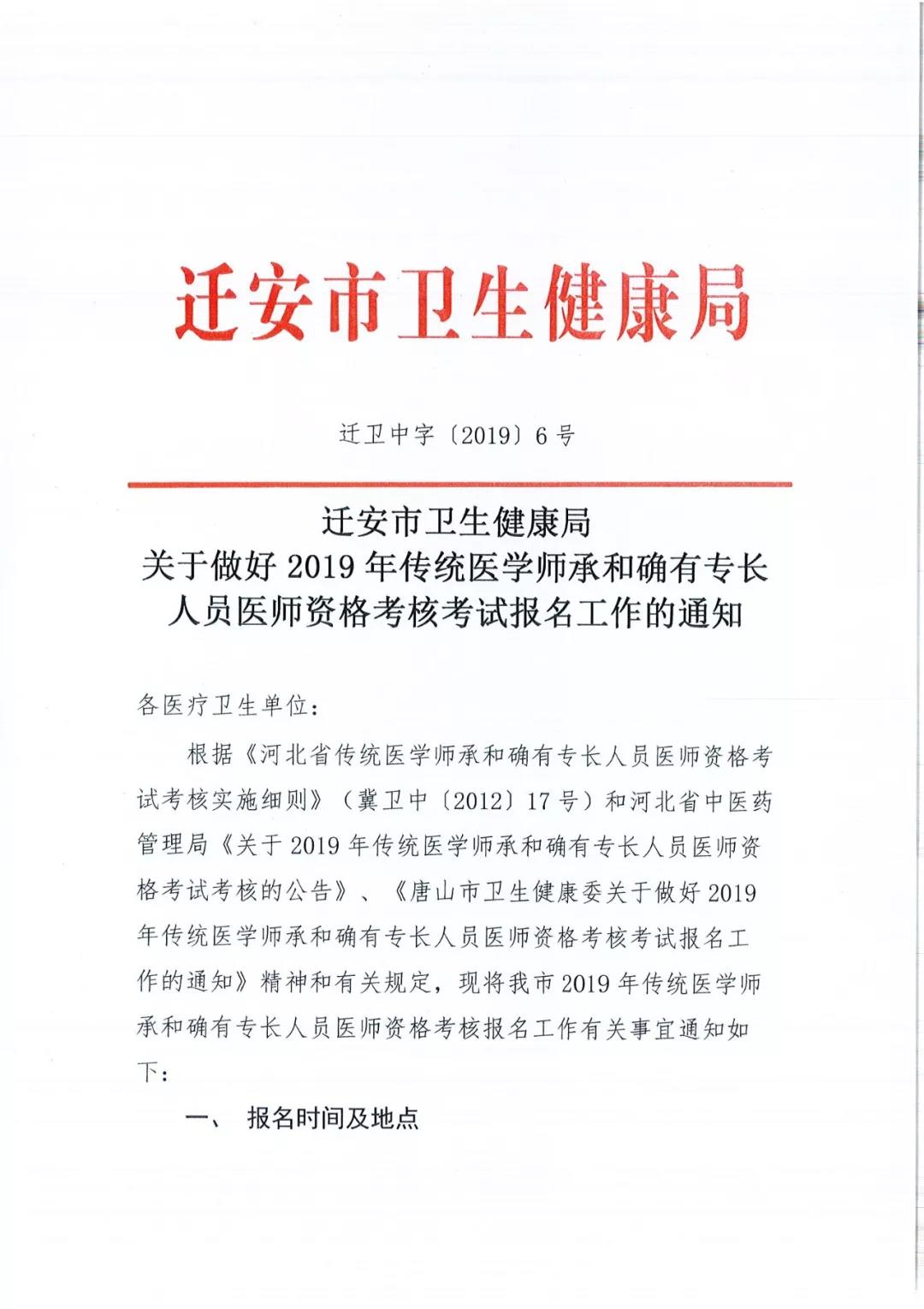 关于“迁安市2019年传统医学师承和确有专长人员医师资格考核考试报名工作的通知”相关内容,相信大家都想知道,为方便大家了解,在此医学教育网小编为大家整理如下内容: