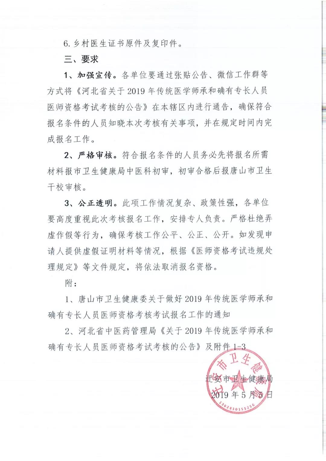 以上为“迁安市2019年传统医学师承和确有专长人员医师资格考核考试报名工作的通知”全部内容,由医学教育网小编整理,更多信息请随时关注医学教育网。