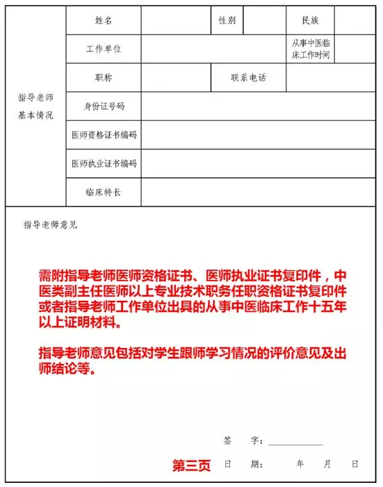 填表说明:第1-2页由申请人本人填写。第3-4页表格格式和师承人员申请表一样,要求可参考前面内容。第5页由各级中医药主管部门填写,在这里不做赘述。