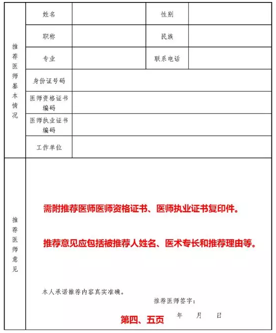 填表说明:第4-5页表格样式一致,由2名推荐医师填写。第6页由各级中医药主管部门填写,在这里不做赘述。