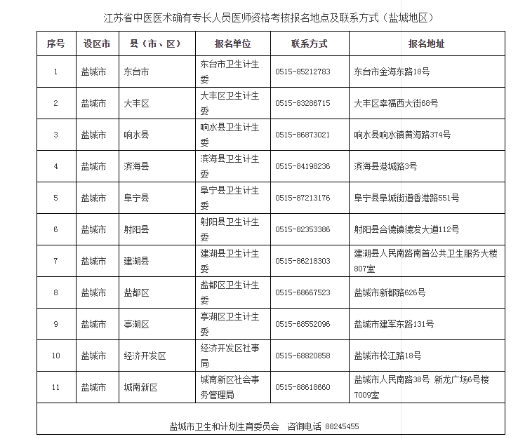 附件:江苏省中医医术确有专长人员医师资格考核报名地点及联系方式