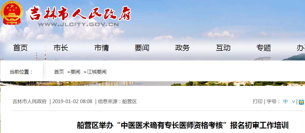 根据吉林省中医药管理局“关于开展吉林省2018年中医医术确有专长医师资格考核试点工作的公告”,船营区被确定为吉林省在吉林市两区两县开展医术确有专长人员医师资格考核试点区之一。