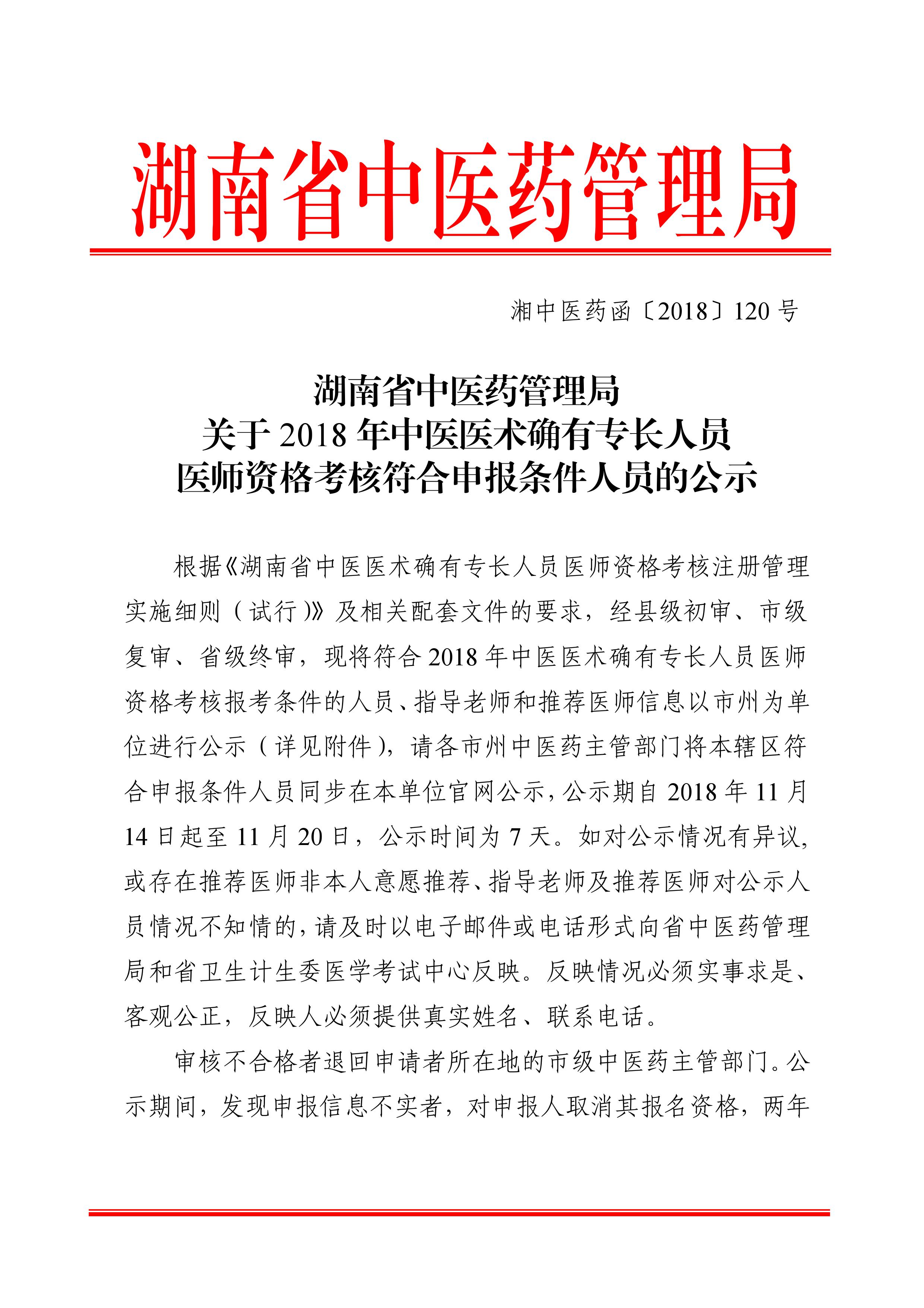 近日,湖南省管理机构公布衡阳市2018年中医医术确有专长人员医师资格考核符合报考条件人员公示信息,共279人。小编为大家做以下汇总,可以作为参考,具体名单请查收附件。