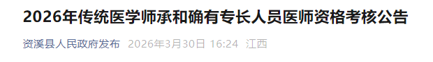 2026年资溪县确有专长人员医师资格考核通知整理如下: