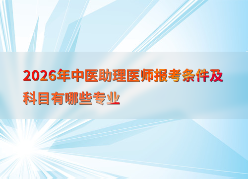 2026年中医助理医师考试报名预计在1—2月进行,考生需满足学历或师承确有专长两类条件。