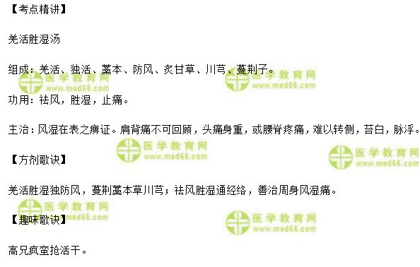 - · 中医执业助理医师考试《方剂学》方剂歌诀速记:祛湿剂-羌活胜湿汤