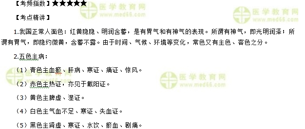 - · 望诊中“望面色”考点—五色主病(中医助理考试中的重要知识点)