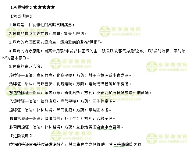 中医执业助理医师考试复习备考期,抓住重点、考点才是**的关键。医学教育网编辑将“中医执业助理医师备考辅导之哮病常见试题及解析”分享给大家,希望对复习相关章节提供帮助。