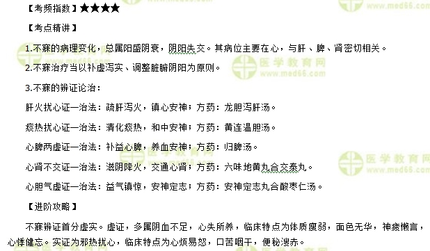 中医助理医师考试复习时间越来越紧张,如果我们知道了考试的高频考点,并且在复习中与做题相结合,这样对于学习会相对轻松很多。医学教育网编辑将“不寐——中医助理医师考试《中医内科学》章节测试习题训练”分享给大家,希望对复习相关章节提供帮助。