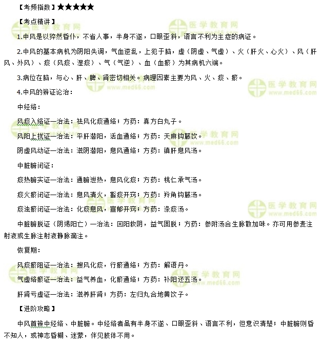 牢记考点、吃透考点需要有计划地复习巩固,为帮助大家更好地复习本部分内容,医学教育网编辑将“中医执业助理医师考试“脑系病症”考点习题详解——中风”具体资料为大家整理如下: