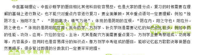 以上为“【总结】2019中医助理医师各单元考试重点/出题点/最易得分点”全部内容,由医学教育网小编整理,更多文章请随时关注医学教育网中医执业助理医师考试栏目!