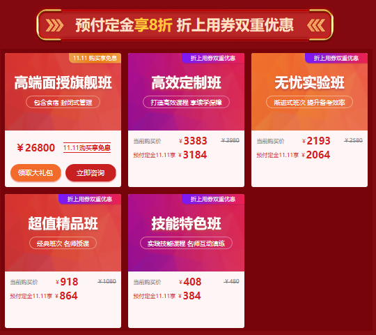 今天是2019年11月10日,距离11月11日还有最后的几个小时时间!这也就意味着,可供你预付定金的时间也仅剩这几个小时了!医学教育网全场课程预付定金享8折优惠!时间有限,你还在等什么?!