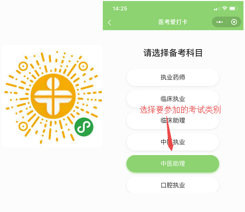 水滴石穿!2020中医执业助理医师刷题小程序—医考爱打卡第二阶段开启!每日一个知识点对应经典习题,巩固学员复习效果!那么该如何免费使用这款小程序呢?小编一步一步告诉你: