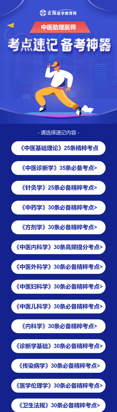 笔试冲刺阶段如何60秒一个必考点?中医助理医师考点速记神器可以!马上进入了笔试的冲刺阶段,笔试考试范围大、考点多,为了医学教育网带来了“中医助理医师考点速记神器”,你值得拥有!
