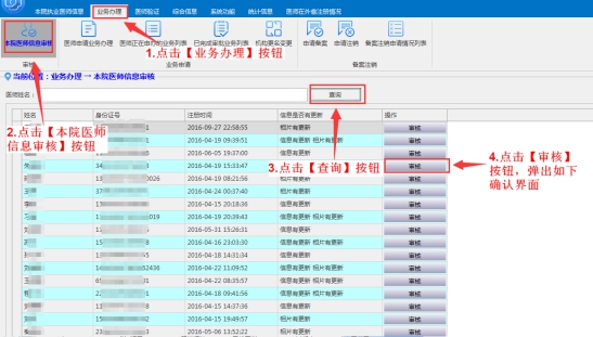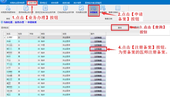 l 及时确认医师的业务申请,并打印相关申请表。如:注册申请、变更申请、重新注册申请及备案注销申请表。
