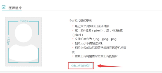 l 此功能模块可上传医师的个人照片。照片可重复上传,但只会保留最后一次上传的照片。