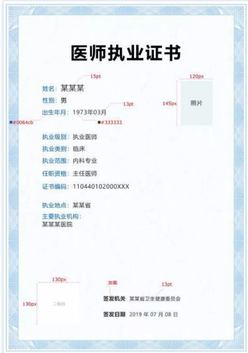 “中医执业助理医师电子证照申领步骤/医师电子证照样式图”的内容很多人都想知道,医学教育网小编为此整理了“中医执业助理医师电子证照申领步骤/医师电子证照样式图”,详情如下: