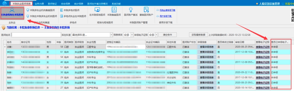 医疗机构可以登录医师电子化注册机构端查询统计本机构电子证照申领情况,及维护电子化注册医师信息。