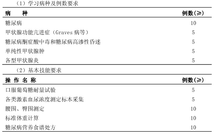 内科专科医师培训-内分泌代谢科轮转的基本标准