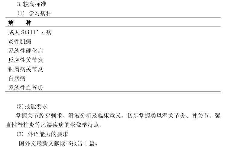 内科专科医师培训--风湿免疫科轮转的较高标准