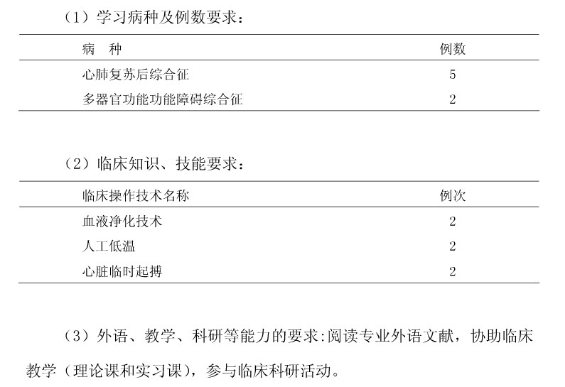 急诊专科医师培训-急诊ICU或综合ICU轮转较高要求
