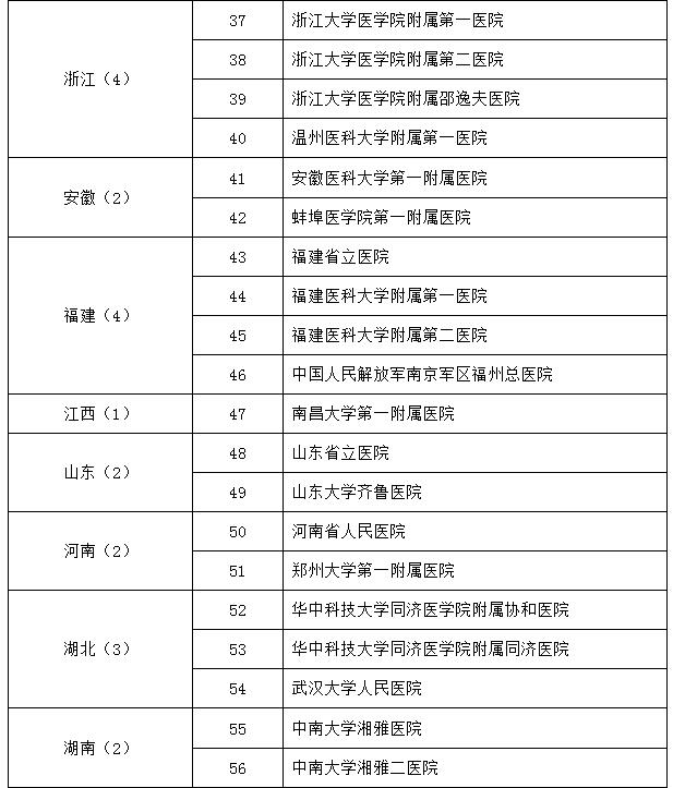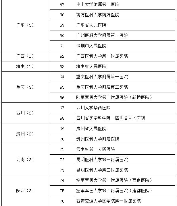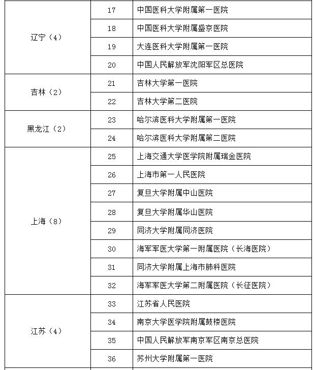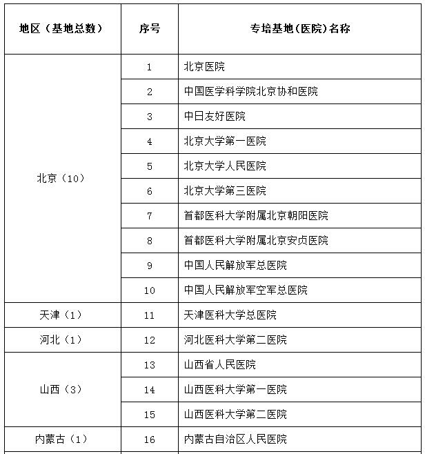 呼吸与危重症医学试点专科医师培训基地遴选名单