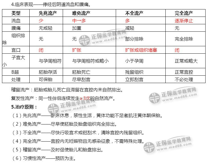 流产临床表现区分及临床治疗: