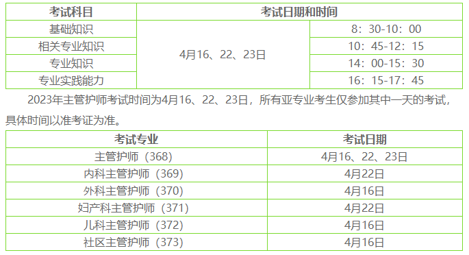 2023主管护师考试各亚专业考试时间