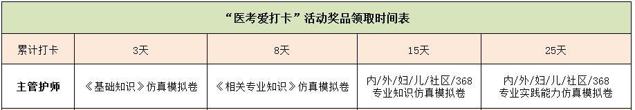 参与主管护师“护考爱打卡”活动,助你坚持复习,快速冲刺**,更有《仿真模拟卷》和高频考点秘籍大礼包免费赠送!