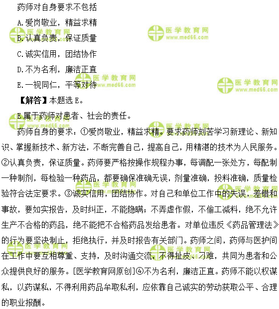 2.【问题】药师对自身要求有哪些?如下题,如何解答?