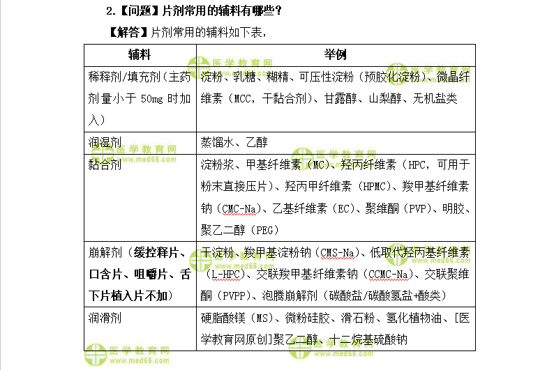 2.【问题】片剂常用的辅料有哪些?
