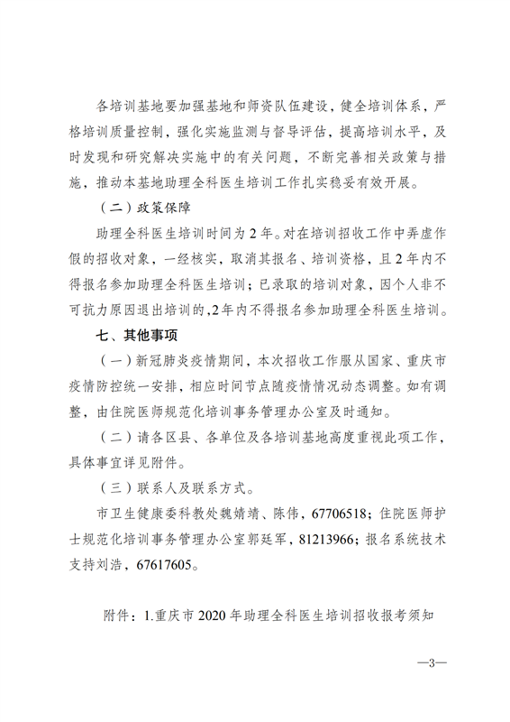 以上为“关于开展重庆市2020年助理全科医生培训招收工作的通知”的相关内容,希望对您有所帮助!了解更多更新更全的住院医师规范化培训信息,请点击医学教育网!