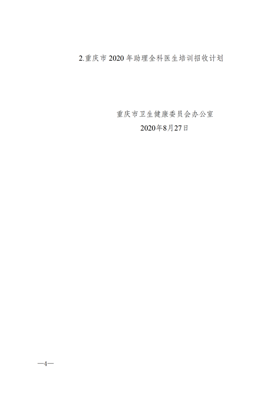 关于开展重庆市2020年助理全科医生培训招收工作的通知
