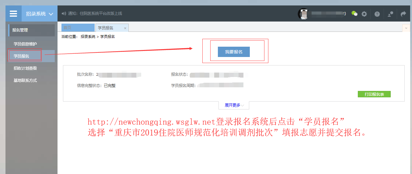 注:仅供重庆市2019住院医师规范化培训批次未被录取且服从调剂的学员报名,其他人报名无效.