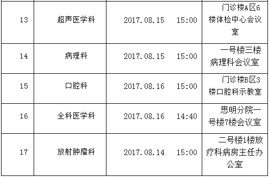 2017年福建省住院医师规范化培训基地第一志愿招生面试工作将于8月14日—8月17日进行,现将面试安排公布如下,请各位学员必须在指定的时间、地点提前到达考场,同时做好以下考试材料准备: