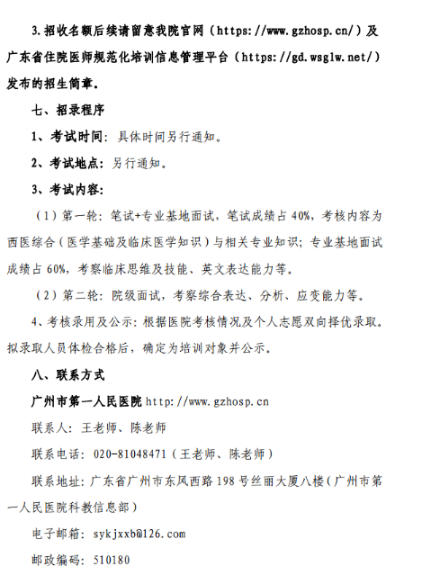以上就是“广州市第一人民医院2022年住院医师规范化培训招生简章(预报名)”的全部内容,由医学教育网小编整理,希望对您有所帮助!想要了解更多关于住院医师规范化培训考试相关政策,请继续关注此栏目!