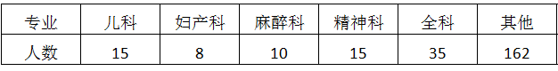 可招收专业包括:内科、儿科、急诊科、皮肤科、精神科、神经内科、全科、康复医学科、外科、外科(神经外科方向)、外科(胸心外科方向)、外科(泌尿外科方向)、外科(整形外科方向)、妇产科、眼科、耳鼻咽喉科、麻醉科、临床病理科、放射科、超声医学科、核医学科、放射肿瘤科、医学遗传科、检验医学科、口腔全科、口腔内科、口腔颌面外科、口腔修复科