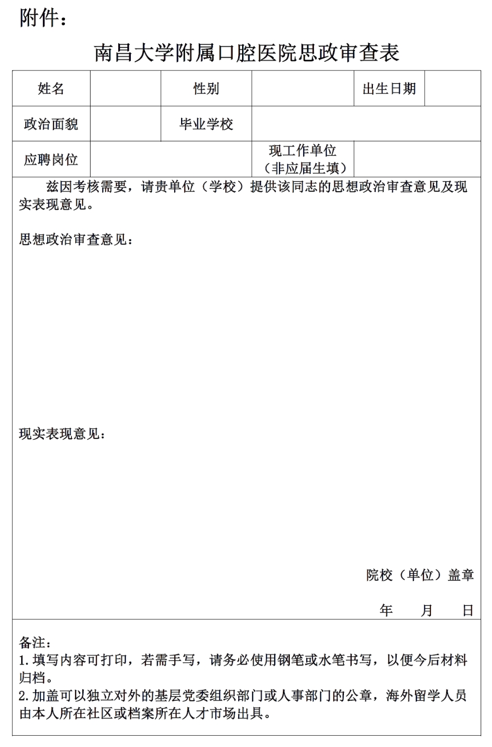 4.政审材料(应届生由毕业学校出具,社会学员由当地街办或人才流动中心出具,见附件);