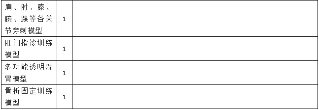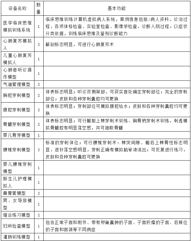(3)有临床技能模拟训练中心,具备可满足教学、实践操作等使用的临床技能训练模拟设备,见表1。