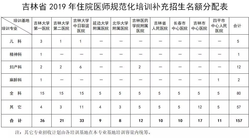 此次补招157人,以全科专业为主。名额见招生分配表(详见附件)。