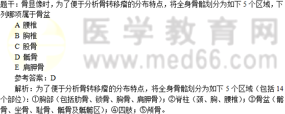题干:骨转移瘤可发生于全身任何骨骼,最为常见的是