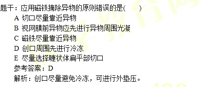 题干:眼球外异物说法错误的是( )