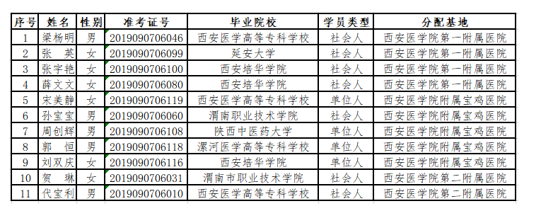 2019年助理全科招录报道工作已经顺利完成,11人未按时进入基地报到,自动放弃本次培训资格,根据“2019年助理全科医生培训招录通知”要求,经省卫健委研究决定,现按成绩依次递补,录取人员名单如下: