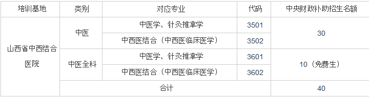 2019年山西省中西医结合医院中医住院医师规范化培训招生计划表